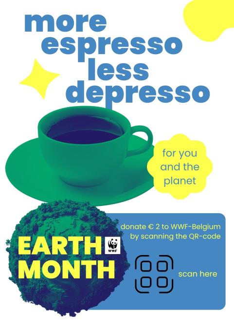 Tijdens Earth Month verkopen ze een exclusieve koffie (biologisch én fair trade), en geven ze 20% van de opbrengsten daarvan aan WWF-België.