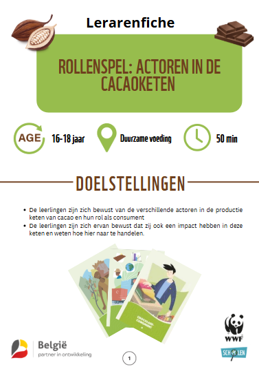 Een workshop duurt 2 lesuren (2*50 min) en kan herhaald worden voor twee klasgroepen op dezelfde dag. Het ideale aantal leerlingen per groep bedraagt tussen de 15 en 25 leerlingen. Door middel van spelletjes, video's en debatten ontdekken de leerlingen de impact van de cacaoproductie op ecosystemen en menselijke populaties. Je kan één of meerdere klassen inschrijven.